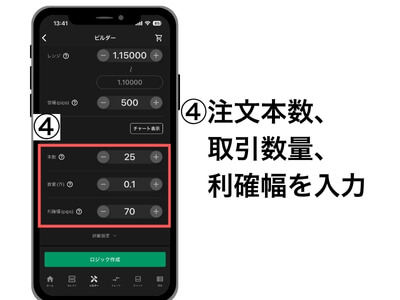 一般的な自動売買は、設定されたロジックに沿って一律の取引を行うだけですが、トライオートFXは独自の「つくる」機能によって自由に調整できます。