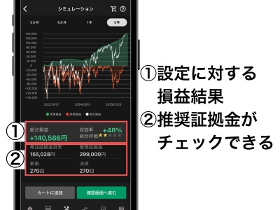 - シミュレーションで過去の成績・損失リスク・必要資金を事前確認できる