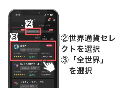 世界通貨セレクトの中から実績の出ている通貨ペアを選べば、効率的に利益が狙えるよ!